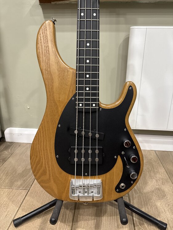 Ideally would like to trade so let me know, preferably P or J but you never know and neither do I some info gubbins Body:Sassafras body, quite thin but this adds to the non back cracking weight! Neck: Crafted from hard maple reinforced with graphite rods, the bolt-on neck offers superior stability. The Graphitex fretboard ensures a smooth and fast playing experience across all 24 medium frets. Versatile Electronics and Hardware Pickups: Equipped with Alusonic Alnico 5 humbucker bridge and single-coil neck pickups, this bass provides a versatile tonal palette that will cut through any mix whether on stage or in the studio. Controls: The onboard Alusonic active preamp features volume, treble, and bass controls, along with a 5-way selector switch, allowing for precise tonal shaping to match your playing style. Bridge and Tuners: The Alusonic aluminum bridge with a quick-release system and Hipshot Ultralite tuners ensure reliable tuning stability and effortless string changes. Specifications Scale Length: 34 inches Fingerboard Radius: 12 inches Nut Width: 40 mm (approximately 1.57 inches) Weight: Approximately 3.4 kg (7.5 lbs) Frets: 24 medium Fingerboard: Graphitex Neck Finish: Clear satin acrylic with matching headstock Hardware: High mirror finish with chrome hardware