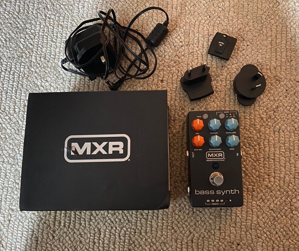 For sale is my MXR Bass Synth. I wanted to try one of these for the Michael Jackson presets as I'm a huge Thriller and 80's fan and they sound excellent. The Sledgehammer preset is also brilliant but my favourite presets were the Herbie Hancock and Stevie Wonder one's. However, I'm a fretless bassist and I'm too much of a traditionalist and in my happy place with just a chorus, octave and reverb so I'm going to let this go for someone else to try. Fully working and in mint condition and has only been used once at home to give it a try. Comes with velcro on the base and comes with the original power supply and everything else that came in the box. Price includes UK postage or collection from Camberley.