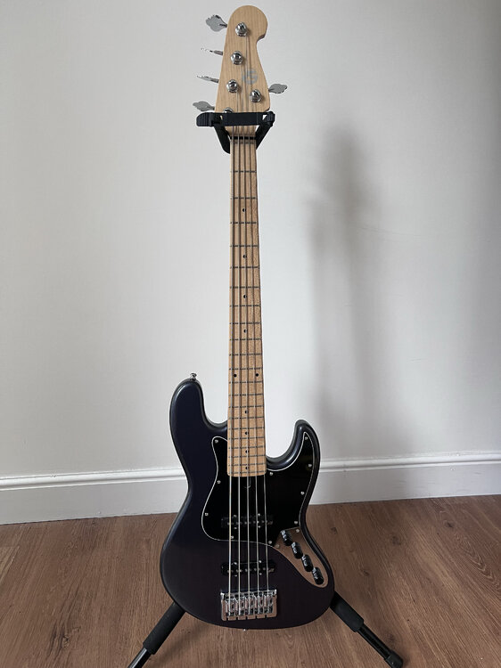 I've realised other than a bit of dabbling I'm not really a man for the fivers! So I can't have this hanging about doing nothing. Really superb condition with a couple of marks I've highlighted. I'm looking for a sale or a trade with a Precision style bass with a thinnish or normal neck. I have the custom/Vintera and love it but not sure if I'm getting on with the thick neck, Here is a bit of blurb Built in 2020, lovely custom Maruszczyk Elwood 5a is a fantastic player with a huge range of tones from the Aguilar AG5J-HC hum-cancelling pickups and Delano Sonar 2-band preamp. If you know Maruszczyk, you’ll know these are exceptional instruments — German-designed, handmade in Poland. Specs: Year: 2020 Body: Alder Body Finish: Gloss Charcoal Metallic Sparkle (a deep metallic grey with a subtle blue hue) Neck: Maple with Maple fretboard – lovely grain, painted gloss finish Reinforcement: Carbon rods in the neck Nut Width: 45 mm Radius: 14" Scale Length: 34" Frets: 21 Pickups: Aguilar AG5J-HC hum-cancelling Electronics: Delano Sonar 2-band active preamp Push/pull volume for active/passive switching Treble knob doubles as passive tone control Bridge: Standard Maruszczyk (19 mm spacing) Tuners: Standard Maruszczyk Weight: 9 lbs 12 oz (4.4 kg) Condition: Excellent overall condition with some tiny signs of wear. Everything work perfectly. Comfortable to play, looks and sounds brilliant. Extras: Includes the original Maruszczyk gig bag and certificate Price / Trades: £1000 Prefer collection from Glasgow, but can ship within the UK at the buyer’s expense (securely packed and fully insured). Would also consider trades or part-exchanges for a Precision-style bass — ideally with a thinner neck than my current P! Particularly interested in: USA or MIJ Fender Precision MIM Nate Mendel Precision Maruszczyk or Limelight P-basses Open to other quality P-style options too — so what have you got!