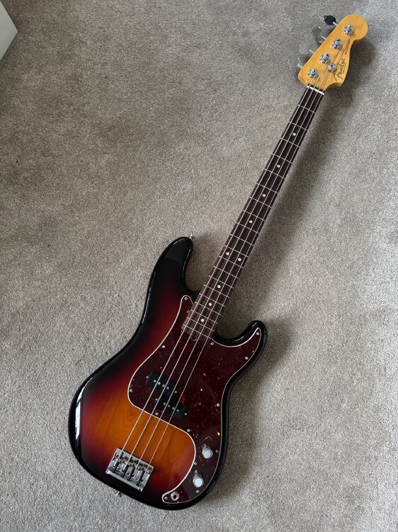 3. Fender American Professional ii Precision bass in 3 tone sunburst with rosewood neck. Born in 2023 and in very nice condition with next to no marks or fret wear. Weighs in at just over 3.9 kg from what the Bassbros advert said when I bought it. Currently wearing a recent set of DR nickel lo riders 45-105 and sporting a nice low action of around 2mm at the 12th fret. comes complete with the original hard case and certificate of authenticity and the truss road tool. I am mainly interested in trades for the equivalent or similar jazz bass, however the weight needs to be 4kg or less. 4 and 5 string are both an option.