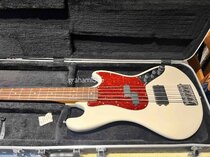 Purchased by me in 1972 from Sound City, Shaftesbury Avenue and extensively used throughout the 70's and 80's until GAS took hold! It has been refinished many times since the blue sparkle finish seen in the Fender catalogue. The current finish looks OK but isn't great, with a few marks and a chip near the jack insert. The original pick up was soon added to with a John Birch steel guitar near the bridge, which sounded great. The feint outline of this pickup is still visible. This was replaced by the Bartolini MM pickup at the bridge by Mansons of Exeter. The original Fender pickup was then outed in favour of the Bartolini PB pickup installed by The Bass Gallery - the battery is for this pickup. Currently the bass sounds better than it ever has. Original reverse thread tuners. 34" scale. Truss rod works. Hardly any fret wear. Around 4.3 kilos. Bit of neck dive. Strung BEADG instead of EADGC. Original bridge. 15 frets only. I've loads of photos which I may have to post separately. The case is a fairly cheap TGI one in good condition. A bit difficult (for me anyway) to access the higher frets due to a rather bulky neck pocket and the left over damage from a broken wrist. The buyer may like to restore this to its original specs, but I assure you the pickups now fitted sound infinitely better than the original one. Any questions please ask. The price is firm, and no exchanges thanks. I'm now 80 and certainly don't need any more basses! Meet up somewhere in the south is the preferred course of action