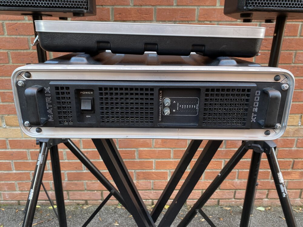 Used but in great condition. I have used this amp in my PA rig running top boxes and it has been amazing and has never been driven hard. The power handling is superb. Sadly It really does not get used enough to justify my keeping it. It has amazing power with fantastic build quality. Sold in the SKB rack case that it lives in. Picked up the following description which if you don't know what this is will give you a good idea. I will ship well packaged for £15 and it is also available for pickup from CF833SR. Happy to use your choice of carrier at cost. The XT2000 outputs 1000 watts of great sounding class AB sound per channel from its 7.5 kg chassis. Often used for high powered compression driver arrays on large systems, kick bins, large top boxes requiring up to 1000 watts at 4 ohm and the bottom end of sub / satellite systems where the subs require 1000 watts at 4ohms, each. Can also be used with; high powered compression driver arrays on large systems kick bins large top boxes requiring up to 1000 watts at 4 ohm pairs of subs requiring 1000 watts each at 4 ohm. The switched mode power supply ensures that plenty of power is available for the output stage to faithfully reproduce every transient in your original source material. The dual speed temperature controlled 80mm long-life fan draws air through the front, exhausting heat from the rear of the rack. The amplifier has fully balanced Neutrik XLR inputs, Neutrik Speakon® NL4 output sockets and is connected to the mains by a fused 20A Powercon inlet. Number of channels:2 Height (RU):2U Watts (rms) per channel, 8R:600 Watts (rms) per channel, 4R:1000 Watts (rms) Bridge Mode, 8R:2000 Average Supply Current, Full load:10A Mains Connector:20A POWERCON Frequency Response (±3dB ref 1kHz):8Hz – 24kHz Signal to Noise Ratio (ref full power, 1kHz):99dB THD (20Hz - 20kHz, full power):0.07% Slew Rate:65V/μs Damping Factor (ref. 8R, 100Hz):>500 Cooling (Temperature Controlled Dual Speed Fan):1x 80mm Fan Cooling Direction:Front to Back Dimensions, mm:482 wide x 88 high x 210 deep Weight:7.5kg Gain: 37.2dB Sensitivity: .950V RMS for full output.