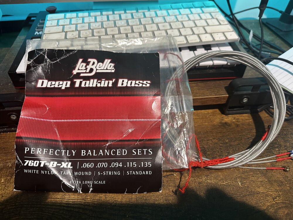 3. 5 String Set of La Bella White Nylon Tapewound strings. Extra Long Scale so fit a 35” scale or a string through body. 60/70/94/115/135 Tapered B string, which makes a big difference on the quality of the sound you get from the B string, especially with Tapes. Bought on here for £45 as barely used, I put them on a bass and played them for maybe 40 mins and ended up selling the bass so they came off, only have 1 x 35” scale bass now and that’s got rounds on so they’re just in my string box - too good (and expensive!) to just sit doing nowt, and I’m after some flats for something else so I’ll sell them. They cost £52-£80 a set depending on where you go, too much to take a punt on and see if you like them, so I’ll make them cheap enough to give em a whirl! £28 Posted Cool video (not sure about the headband tho) of someone with a set on a P7 👇
