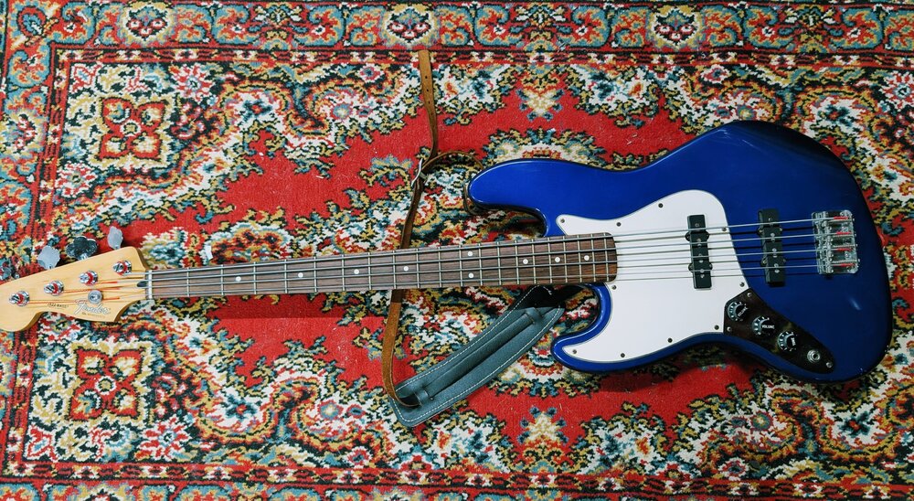 Selling this for a friend who's not using it any more. Midnight Blue MIM Standard Jazz made in 1999. Nice colour and well looked after ....no major dings I could see.....just needs a quick set up and it will be good to go. It's been sat in our dry, clean 'ish' rehearsal room for a few years and needs a new home. At the moment it's collection from south Manchester but could travel 20 max 30 minutes for a meet up if required. I forgot to weigh it before when I took the photos. Will add the weight next week. No trades thanks.