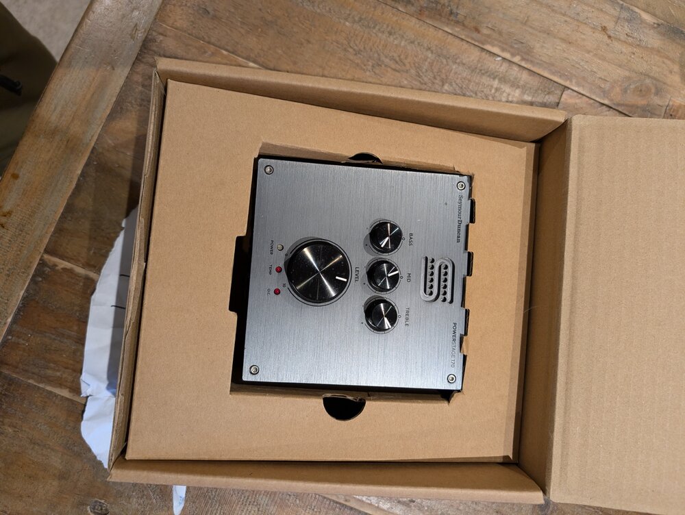 2. £250 plus postage (probably about 12-15 quid, it's quite heavy). Brilliant piece of kit. I used it with various amp modellers and preamps. Sits comfortably on a pedal board and powers cabs of your choosing. Condition is good. There are a couple of superficial marks on it. The fan in this is fairly loud so if you've never heard one It can be quite disconcerting when it fires up! It has double lock stuck on the back at the moment but I can remove and clean if that's a requirement. I'll be sorry to see this go but it's become surplus to requirements and I'm trying to follow my new year's resolution! Thanks for looking, Andy Specifications Product Title: Seymour Duncan PowerStage 170 Product Code: 11901-002 General Power: 170 W @ 4 Ohms Channels: 1 Output Impedance: 4-8 Ohms Controls: Bass, Mid, Treble, Level (Master Volume) Level: 0 dB to 47 dB Treble Control: +/- 13 dB @6.61 kHz Mid Control: +/- 13 dB @712 Hz Bass Control: +/- 13 dB @87 Hz Inputs: 1 x 1/4'' Outputs: 1 x 1/4'' Length: 5'' (127 mm) Dimensions Height: 5.24'' (133 mm) Depth: 2.84'' (72 mm) Weight: 0.9kg (2lbs)