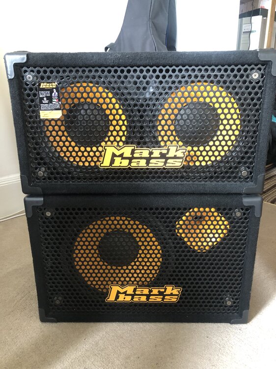 Markbass Traveller 121H and 102P (both 8ohm) cabs for sale. £500 for the pair and I’d rather sell them together but I could be willing to sell individually if they don’t go quickly. Fantastic sounding cabs and very lightweight, easy one handed lift with the handles. Both are in very good condition, small signs of wear but nothing serious. Collection from southeast London preferred, and you're welcome to try before you buy. Willing to drive around an hour to exchange if need be. Specs copied from Markbass website here: 121H 102P IMPEDANCE 8 ohms 8 ohms SPEAKER SIZE 1×12 in. 2×10 in. BASS PORT rear rear TWEETER. 1″ compression driver piezo POWER HANDLING 400W RMS (AES Standard) 400W RMS (AES Standard) CROSSOVER FREQUENCY 3.5 kHz 3.5 kHz FREQUENCY RESPONSE 40 Hz to 20 kHz 45 Hz to 18 kHz SENSITIVITY 99 dB SPL 101 dB SPL WEIGHT 33.07 lbs / 15 Kg 31.97 lbs / 14.5 Kg WIDTH 23.23 in. / 59 cm 23.23 in. / 59 cm HEIGHT 15.08 in. / 38.3 cm 12.60 in. / 32 cm DEPTH 17.13 in. / 43.5 cm 17.13 in. / 43.5 cm