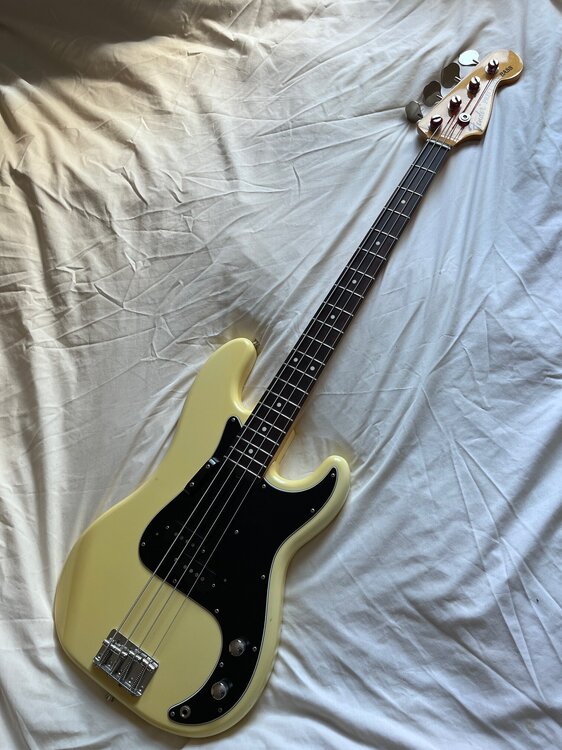 I have a very nice PB70US here. I love its skinny neck, light weight and overall playability/tone but I'm torn between getting an additional jazz bass (as the Yin to the Yang/ Yang to the Yin) OR, in this ad, an all in one like a BB2000 to give me a bit of P and a bit of J. I know a BB2000 isn't a P or a J, but I had one recently and it would do the job... So, if anyone has a BB2000 they're not using much and fancy a very nice precision, how about a trade? This bass is up only for that one specific trade, thanks. Spec-wise, it's an alder/rosewood precision, about 8.5lbs in weight, great frets, sounds fab, neck is in the jazz/U vein etc Comes in a lovely aged Oly white and light flame neck. Rosewood is veeeeryyy dark. Mmmm. Very nice indeed. Here are pics and vid