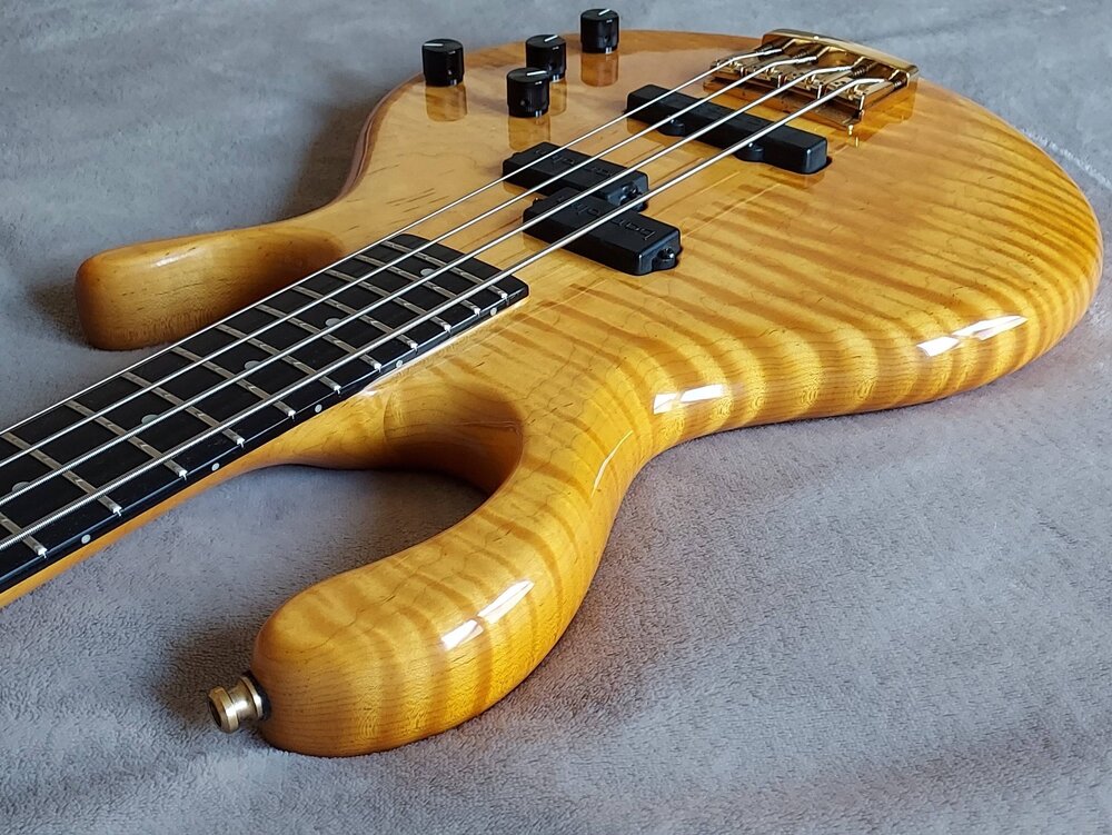 Shipping information Germany €45, EU €125, UK 175€ Item location 56281, Karbach, Germany Price 3750€ / 3300£ I'm selling this superb Pedulla MVP-4 Signature Bass with its original hardshell case. This cool bass was meticulously handcrafted in the USA in 1989 by master guitar maker Michael Pedulla. The bass is completely original and features custom Bartolini pickups paired with a Bartolini preamp. The bass's unique and elegant body shape provides excellent balance whether you're playing sitting or standing. At only 3.95 kg (7 lbs), the bass is very lightweight, allowing you to play comfortably even during long gigs without needing a chiropractor the next day. The sale includes the original Pedulla hardshell case. Please note that unlike newer Pedulla models, this one does not require any special tools for adjusting the truss rod. The truss rod can be adjusted with a simple flathead screwdriver. As many of you already know, Michael has retired, so Pedulla basses are no longer in production. This is a rare opportunity to acquire one of these incredible instruments while it's still possible. Although this bass is 36 years old, it has been treated with care and respect all these years. Aesthetically, it is in exceptionally good condition for its age, and technically everything works perfectly. If you have any questions, please feel free to ask...