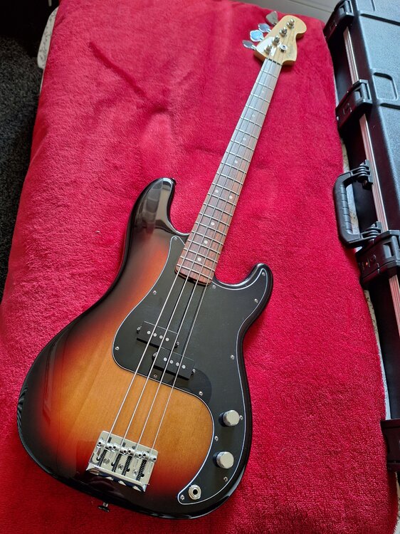 Bought this a few weeks back from GG. It`s a 2008 Standard P bass in vgc (I would describe it as mint but there could be something I have missed). It has all the original case candy and the TSA case is in great condition as well. The only non original things are a replacement scratch plate as the original tort had warped but I will include it, a set of Gotoh strap pins and a fresh set of EB Slinkys. The bass weighs 4 kg or 8.9 lbs. This range was a step up from the previous Standards and you can feel and hear the quality when you play it, I don`t think the previous owner ever played it. Why put it up for sale then? I have had it down to the studio once and was treating it with kid gloves so not the kind of bass I would feel comfortable taking down the Dog and Duck. Also I have damaged my knee and have been off work and may need further treatment so could be doing with the cash. Collection from Paisley or meet up withing reason only. Not looking for trades.