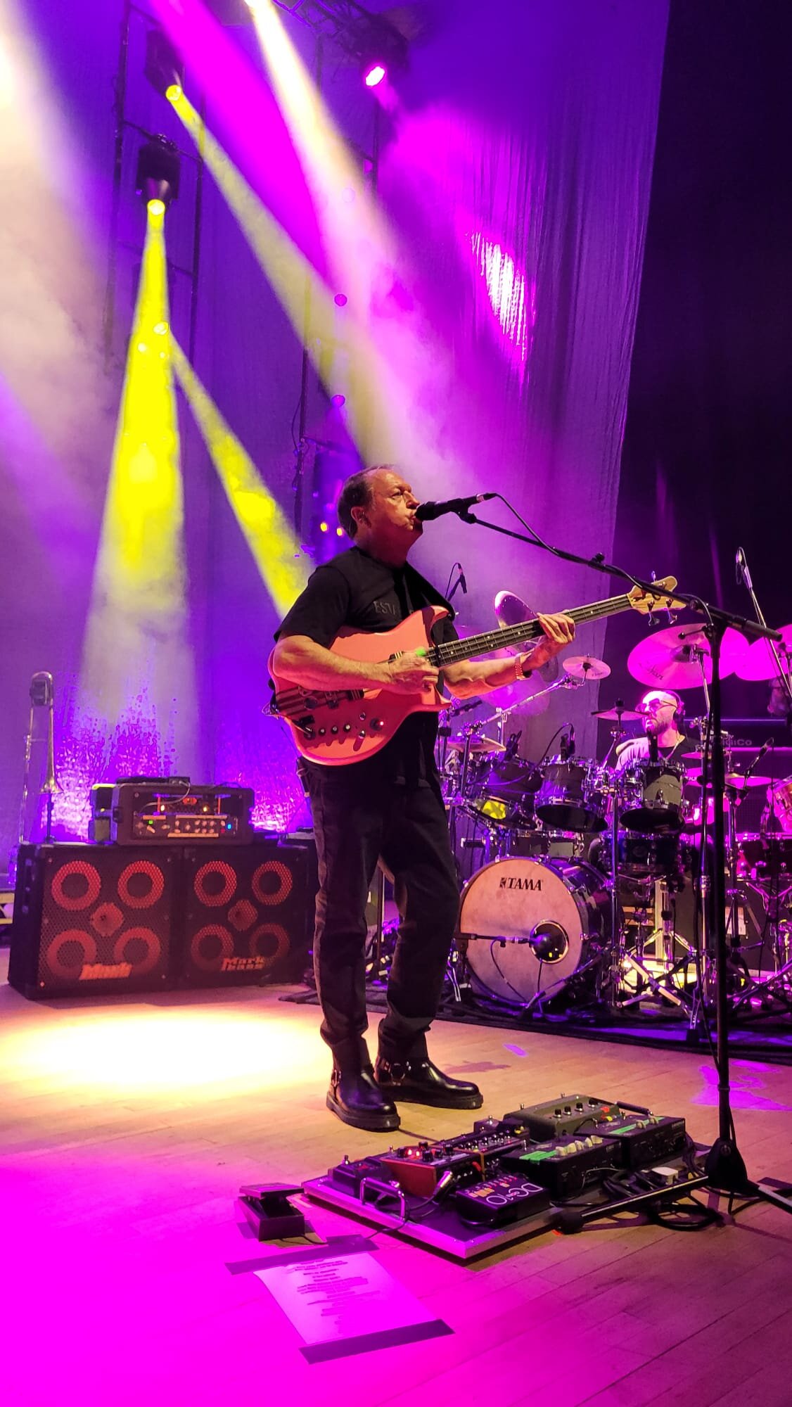 MacDaddy Posted 3 hours ago Posted 3 hours ago ย ย Mark King at Fairfield Hall last night. Mark bass all the way. Little Mark Vintage 1000 head, Standard 104HR cabs, and a small unobtrusive pedal board ๐ 3 Quote