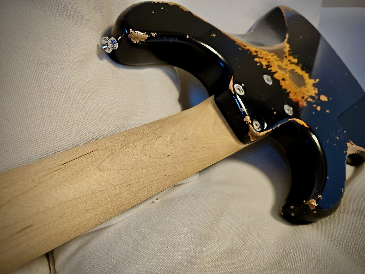 - oversprayed finish (black over 3-tone sunburst)