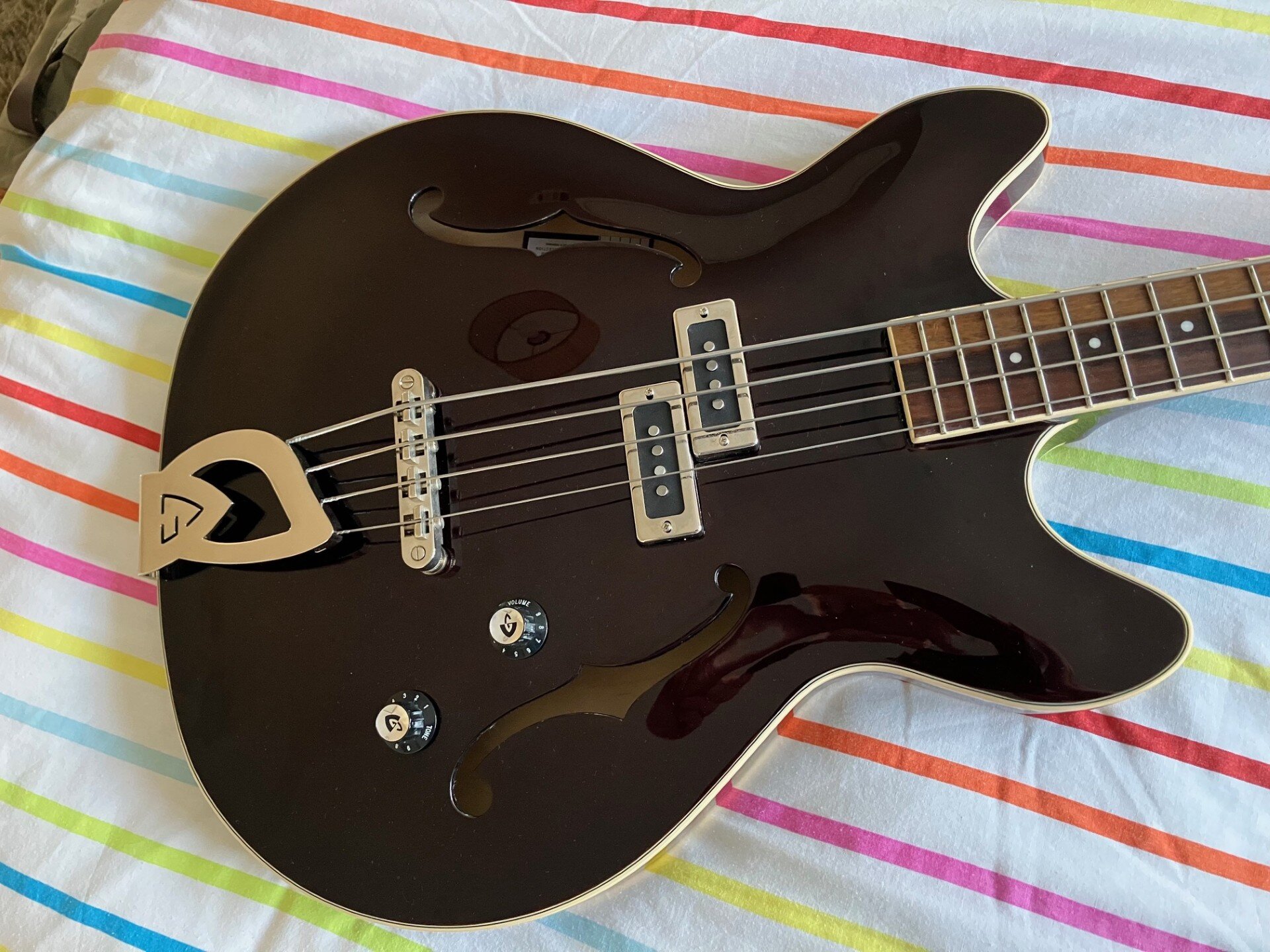 Up for sale is my Guild Starfire 1 bass in walnut. I love these basses, and have 3 of them, but having bought an electric guitar over Christmas I could do with some funds. Fitted with Labella Low Tension Flats and comes with a quality Rockbag Starline Hollowbody gigbag. £450. Collection much preferred but I have some boxes so can post.