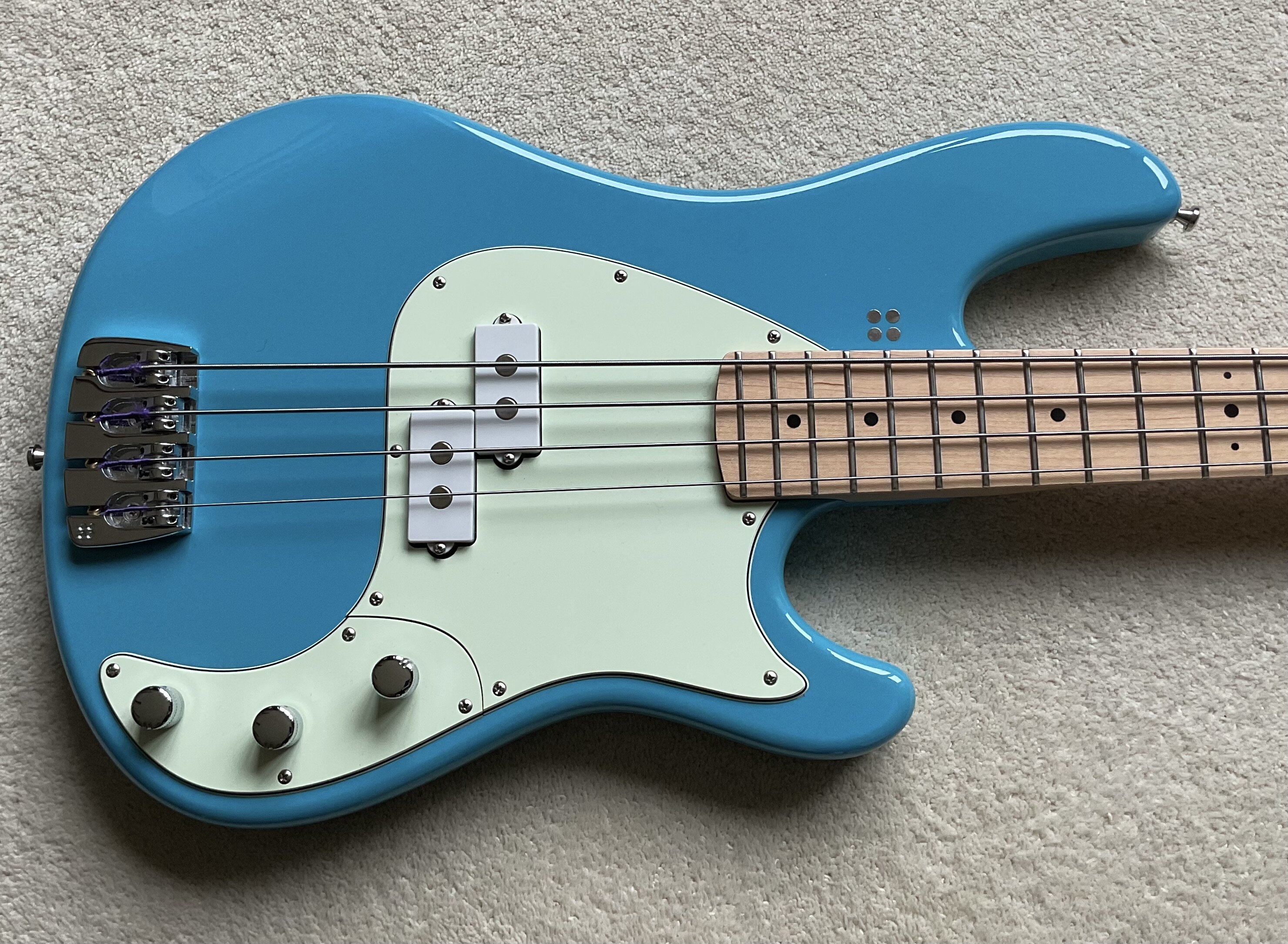 MungoBass Posted 2 hours ago Posted 2 hours ago I’m selling my very nice Sandberg VS in Marley Blue with a Maple fingerboard with factory fitted black dot inlays. I bought this recently from Mark at Classic and Cool (it can still be seen on his website) and it really is a great bass, I’m only selling it as I have just bought another Sandberg, so this one has to go. It can be played in passive mode with a passive tone control or active with a two band eq by simply pushing down the volume control. Being ‘Plecked’ at the factory, it has a very easy and low action without any buzzing. Since the pictures were taken, it has been fitted with a fresh set of D’Addarios. Included is the Sandberg gig bag but if you don’t want that, I can ship it in an old but sturdy rectangular hard case - your choice. Shipping can be arranged at the buyer’s cost and risk - I do have plenty of bubble wrap and a suitable bass cardboard box. Collection in person is of course welcomed. 4 Quote