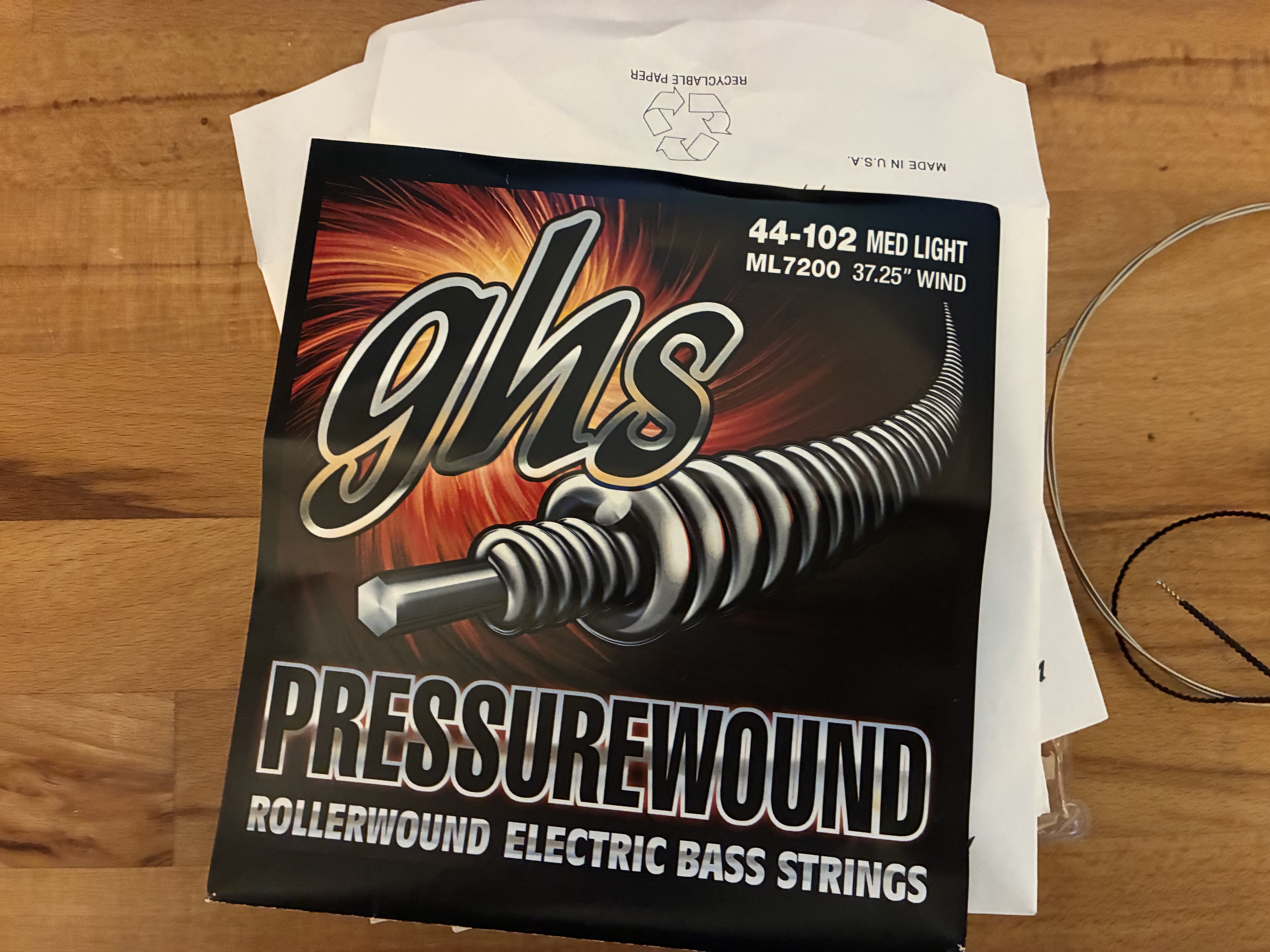 GHS Pressurewound 4-string set - A & E string trimmed for P bass, only fitted for a day £25 posted in the UK