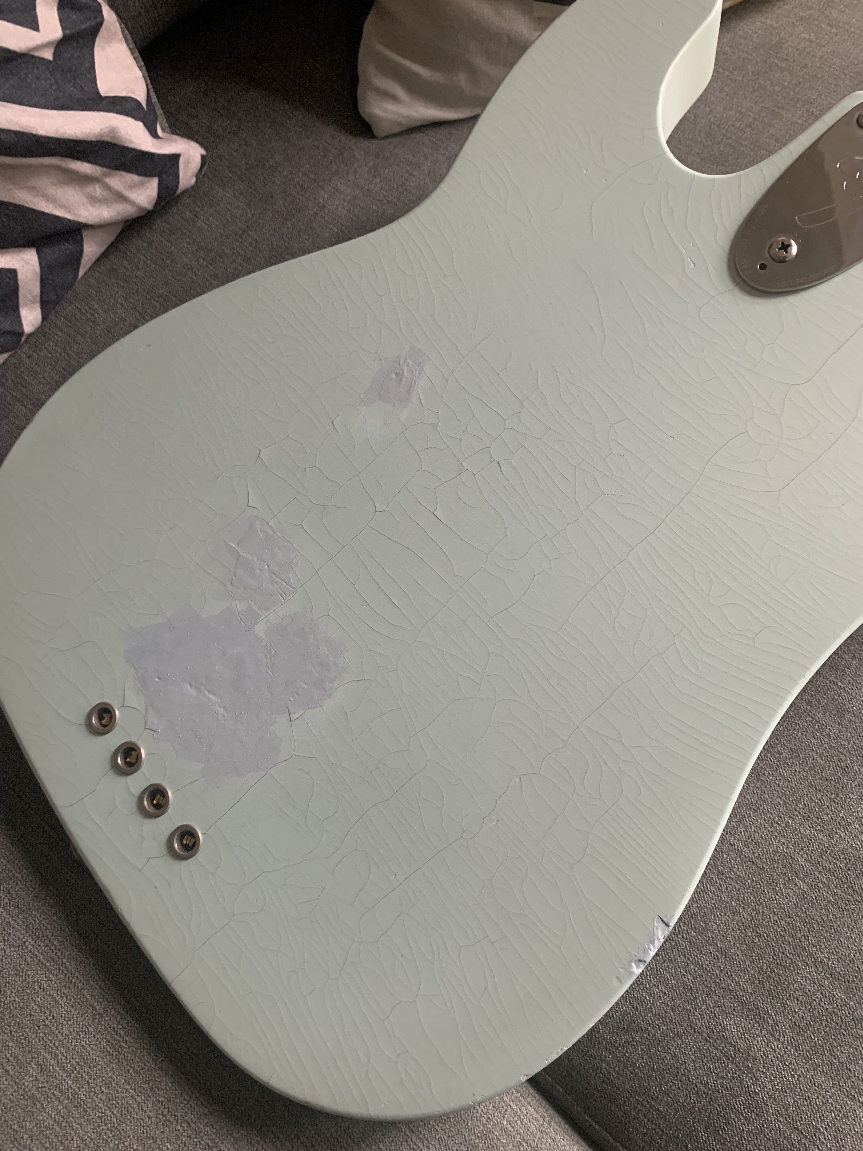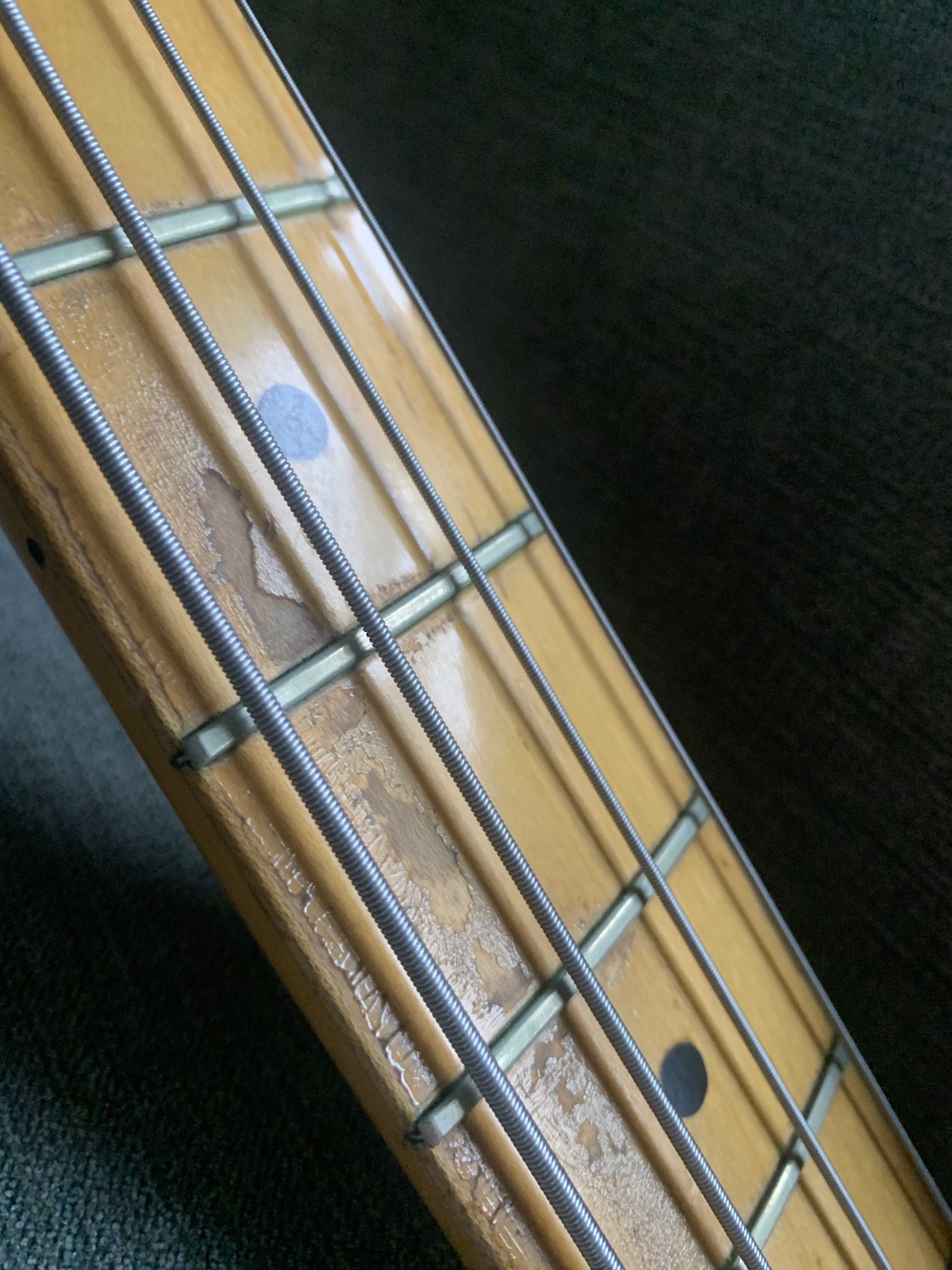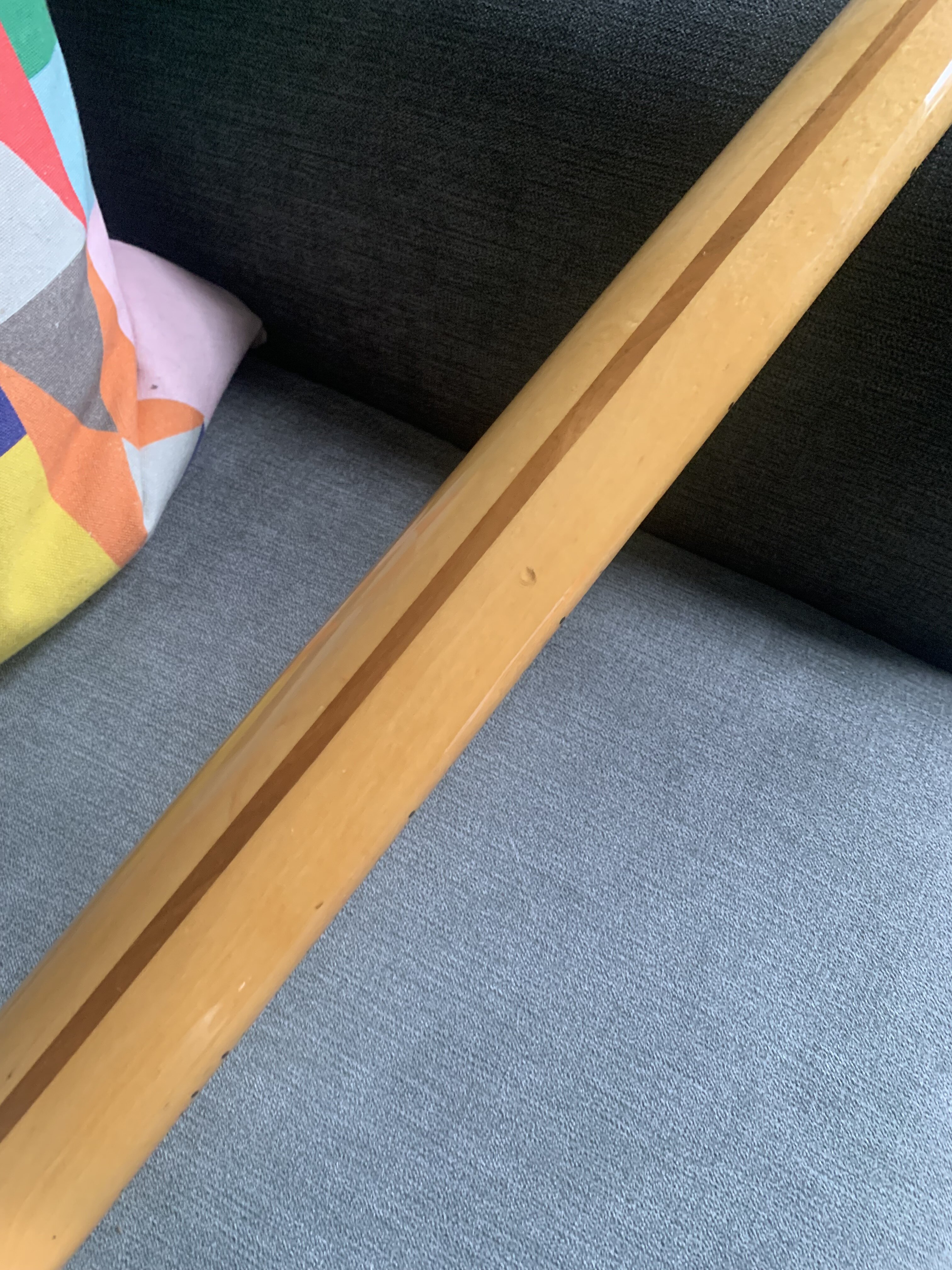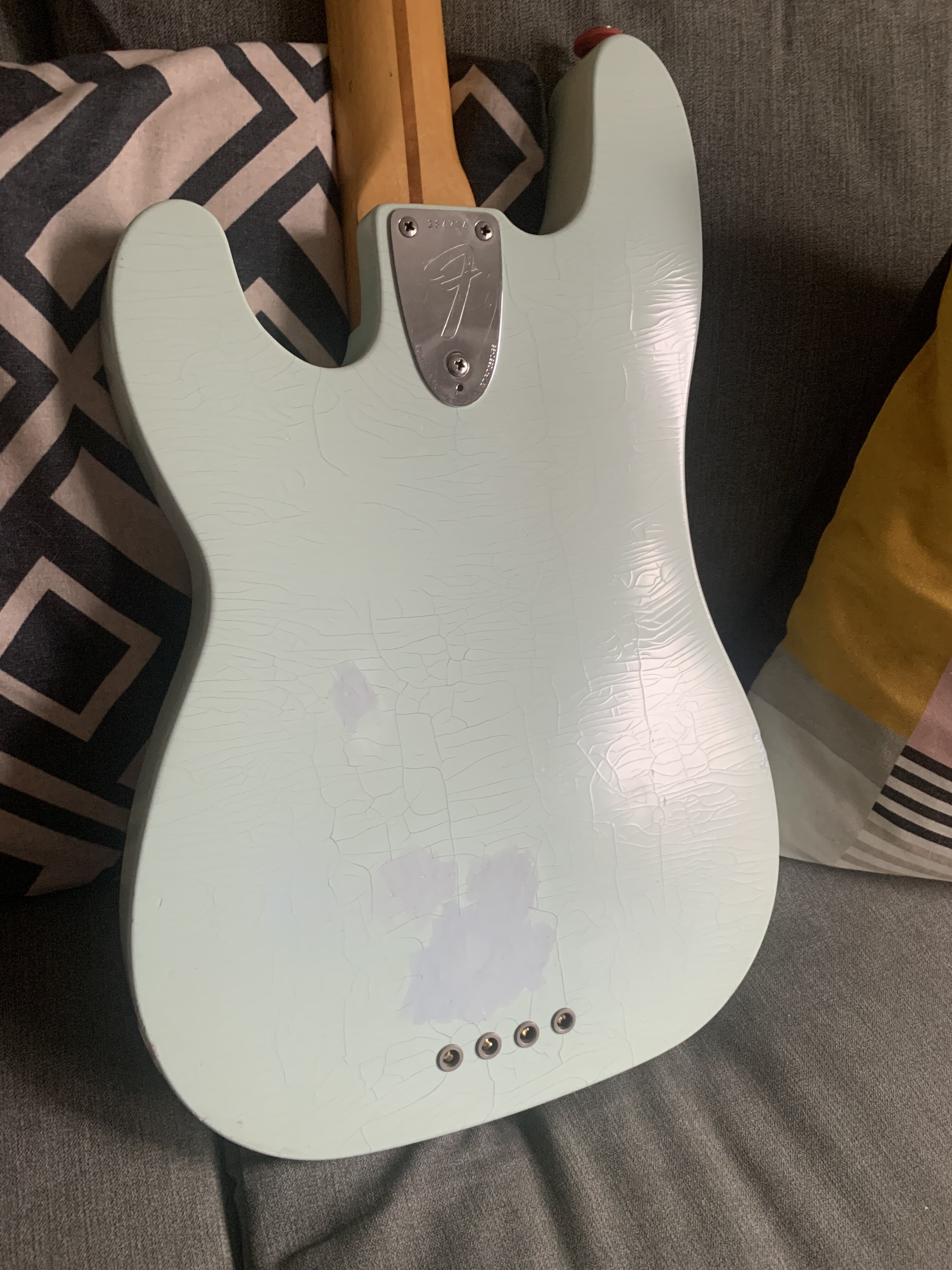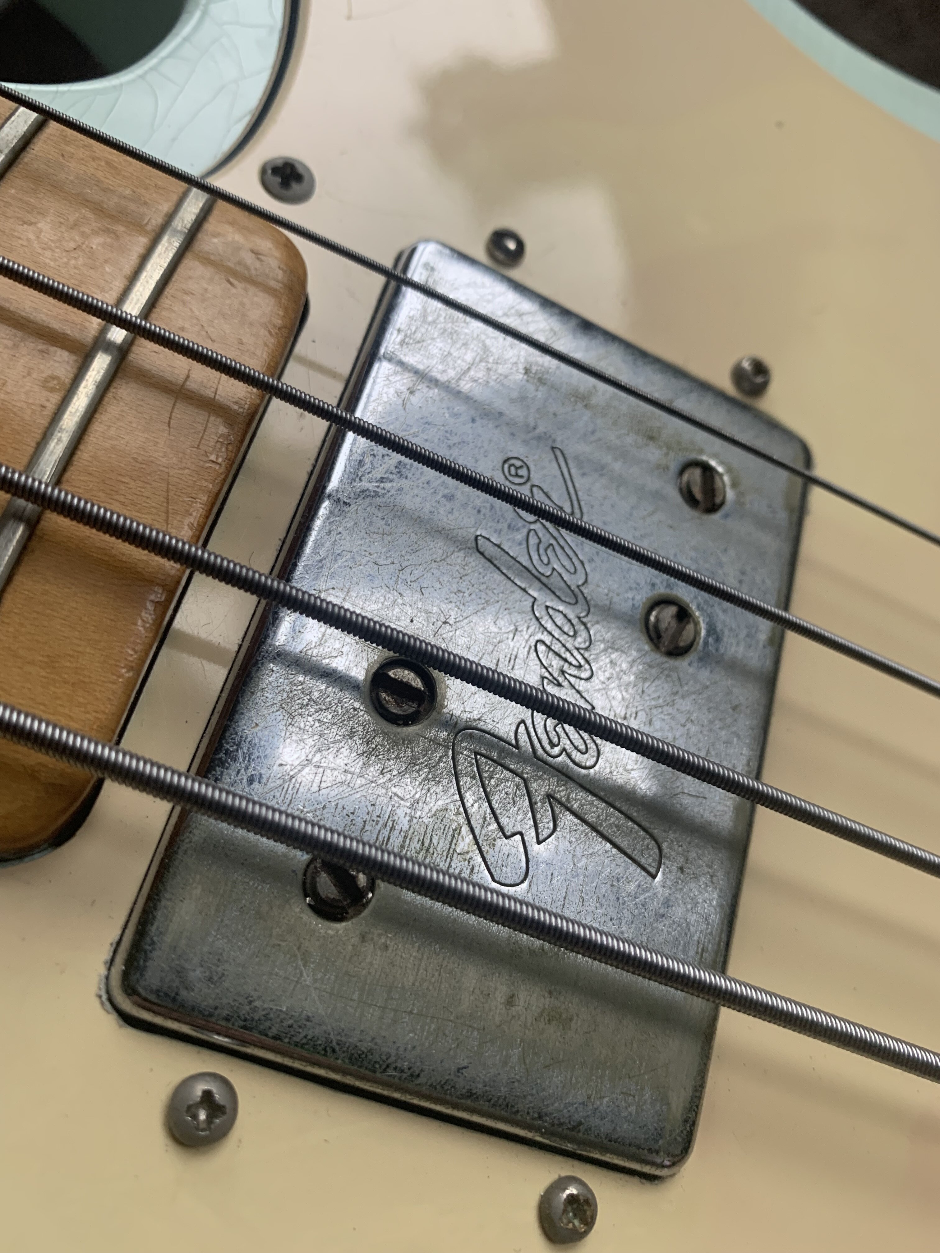 ash Posted 1 hour ago Posted 1 hour ago This is more of a feeler to see if there is any interest. My old Fender Telecaster Bass dates from 1972. The Basschatter who I got it from had the P bass pickup routed and the body refinished by John Diggins. When we exchanged it a few years ago it didn’t have the original Fender humbucker however I managed to source an original which I imported from the US. I added an extra original volume pot from the same era and sourced a 70’s Fender knob. It is wired like a Jazz bass two volumes and one tone. It has the three bolt neck with working micro tilt and a working bullet trussrod. The original finish was natural as there is a stamp under the mudbucker. The tuners, neck , frets and body are all original although I’m not sure of all of the pots and definitely not the wiring. The bridge had been swapped for a four saddle top loader job so I got a two saddle through strung with saddles that can be angled. More in keeping with the original but easier to intonate. The P bass pickup is a cream coloured late 70s vintage Dimarzio DP that sounds fantastic. The big humbucker has real sub bass to it and there are some classic tones to be had between the two. The Diggins refinish is intentionally worn with crazing however there are areas where the routing was rough that have been filled and touched up on the front. There is a larger buckle rash area on the back also touched up rather clumsily as the colour match is very poor. It protected the wood at least! My original intention was to take it back to a natural finish but I’ve not got round to it - as usual…. The scratch plate is a copy of some kind, when I got it the bass looked more like a Mike Dirnt Tele. My luthier cut out the area for the Fender humbucker. The ashtray is original and you can see the remains of the perished rubber mute on the inside of it. The bass plays well and is strung with Elixir coated strings. It is quite hefty but nothing like some of the Tele basses or other basses of this era I’ve played. It is around 4.7kgs. The bass in an earlier incarnation is pictured and described in the Haynes Fender Bass Manual. It’s a players bass rather than one for the collector. It could be restored to the original spec if you really wanted to but you’d have a one trick - albeit a good trick - pony. I’m reluctant to shift it but my P bass isn’t selling and having had some large vets bills recently I need to free up some cash. It is a rare opportunity to buy one of these old Telecaster basses at a sensible (I hope you think so too) price. Pickup preferred but I can post in the UK at cost. Sorry no trades. There isn’t a case with it but I’ll try and source one if you want it posting, otherwise it comes with a Fender gigbag. I’ll be sad to see this one go. I’ll add more pics if required. All the usual ID stamps are on the neck heel and pocket I would rather not remove the neck as they are a faff to set up with the micro tilt. 8 Quote